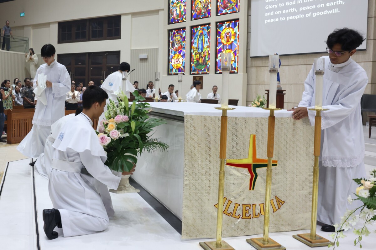 Then follows an extended Liturgy of the Word. The readings trace the great saving works of God throughout history, from creation, through the sacrifice of Abraham, to the crossing of the Red Sea, which is never omitted, showing Israel’s deliverance as a figure of our own salvation in Christ (Exodus 14). After these Old Testament readings, the Gloria is sung and the bells ring out; the Alleluia returns for the first time since Lent began, and the Gospel of the Resurrection is proclaimed.