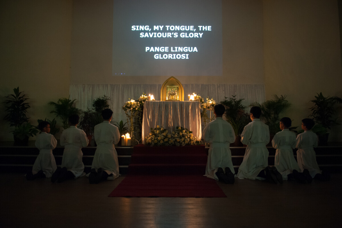 After Mass, the Blessed Sacrament is carried in procession to a place of repose, and the faithful are invited to remain in adoration, accompanying Jesus in His agony in Gethsemane, where He asks, “Could you not watch one hour with me?”