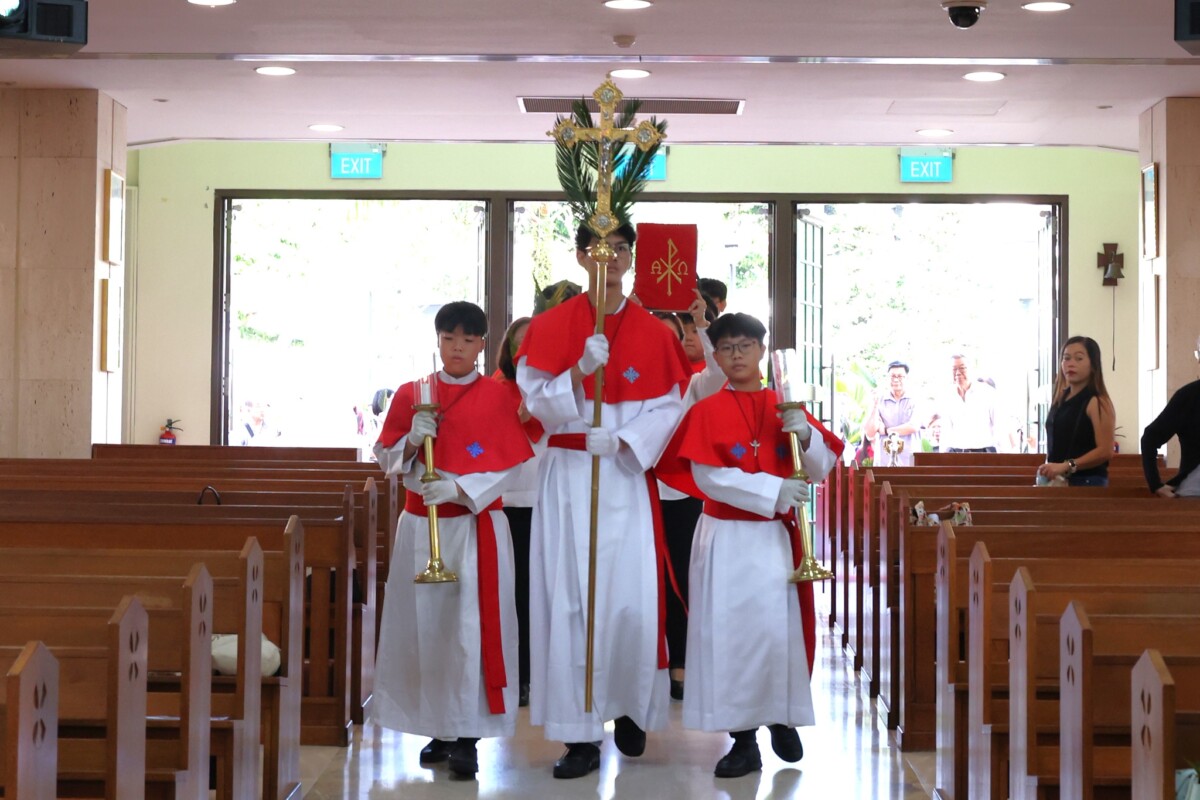 Holy Week begins on Passion (Palm) Sunday, which joins the foretelling of Christ’s regal triumph and the proclamation of His Passion. The commemoration of the entrance of the Lord into Jerusalem has, according to ancient custom, been celebrated with a solemn procession in which the faithful, in song and gesture, imitate the Hebrew children who went to meet the Lord singing “Hosanna.”