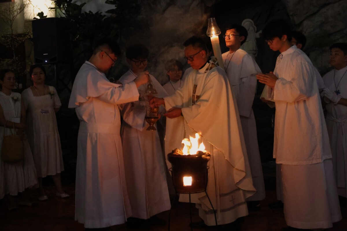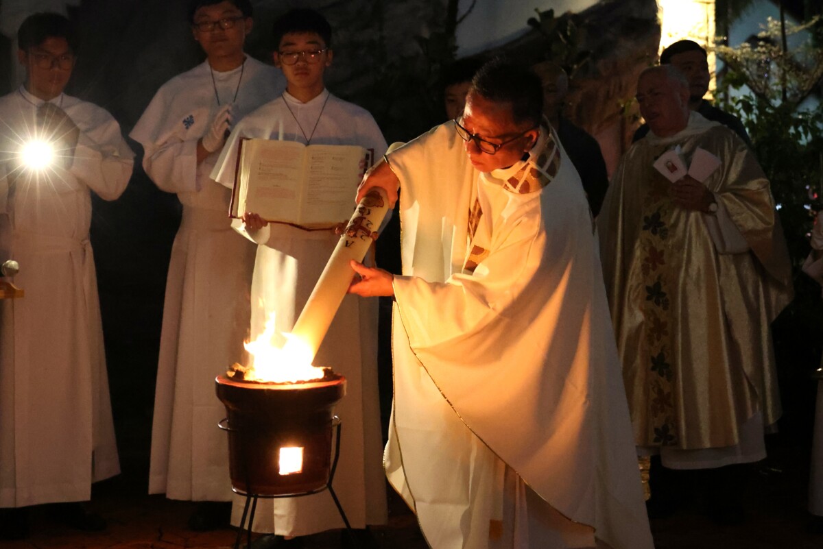 The Easter Vigil is the “mother of all vigils,” the great liturgy in which the Church keeps watch in prayer, listening to the Word of God and celebrating the passage of Christ from death to life. It begins in darkness. Outside, a new fire is blessed, and from it the Paschal Candle is lit, sign of Christ, the Light of the world.